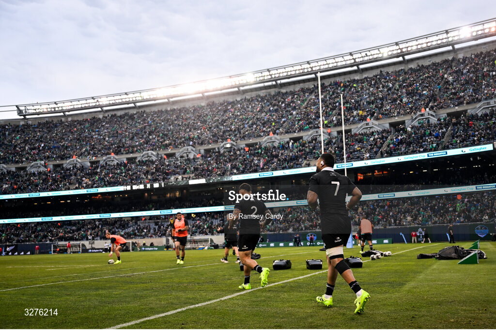 1 November 2025; Ardie Savea of New Zealand runs out for the second half of the Gallagher Cup match between Ireland and New Zealand at Soldier Field in Chicago, USA. Photo by Ramsey Cardy/Sportsfile