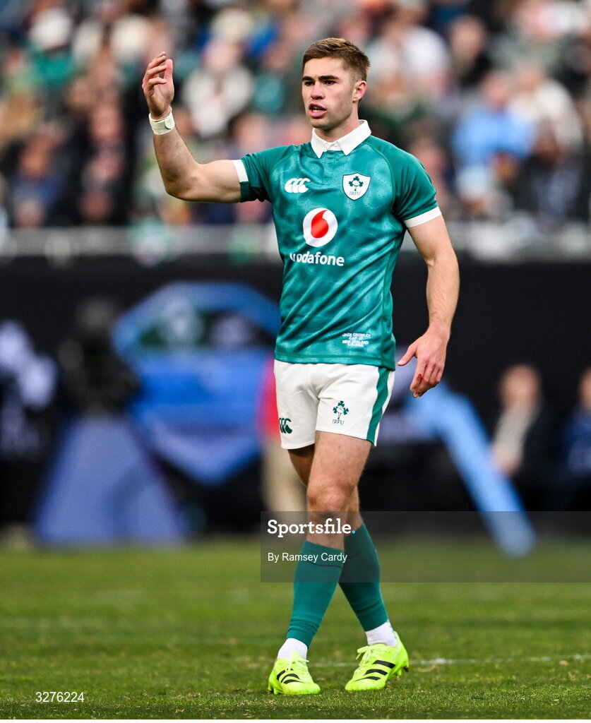 1 November 2025; Jack Crowley of Ireland during the Gallagher Cup match between Ireland and New Zealand at Soldier Field in Chicago, USA. Photo by Ramsey Cardy/Sportsfile