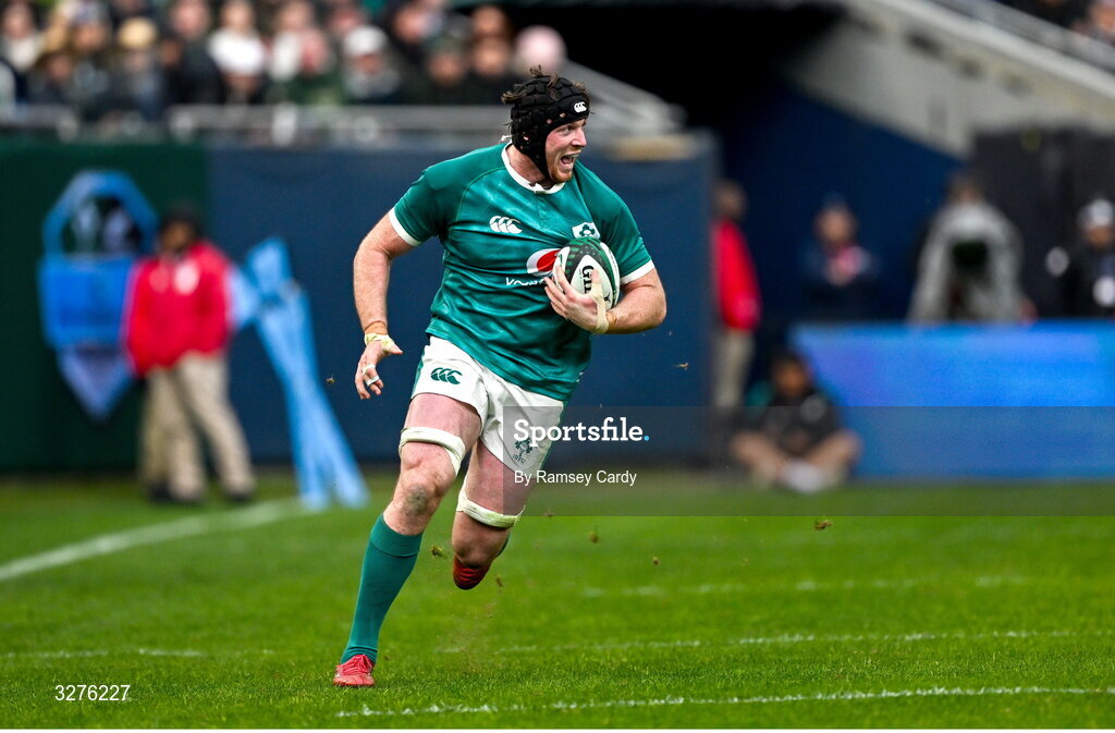 1 November 2025; Ryan Baird of Ireland during the Gallagher Cup match between Ireland and New Zealand at Soldier Field in Chicago, USA. Photo by Ramsey Cardy/Sportsfile