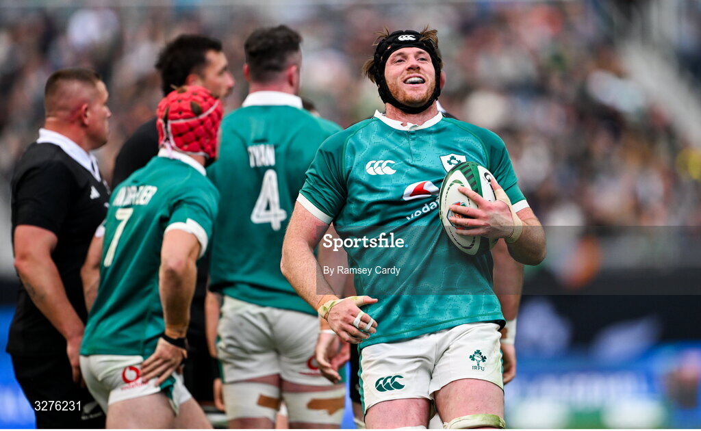 1 November 2025; Ryan Baird of Ireland during the Gallagher Cup match between Ireland and New Zealand at Soldier Field in Chicago, USA. Photo by Ramsey Cardy/Sportsfile