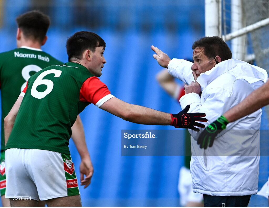 1 November 2025; An umpire gestures to Brian Stack of St Brigid's after making a decision for a a '45' during the Roscommon County Senior Club Football Championship Final Replay between St Brigid's and Pádraig Pearses at King & Moffatt Dr Hyde Park in Roscommon. Photo by Tom Beary/Sportsfile