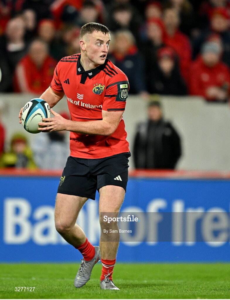1 November 2025; Fionn Gibbons of Munster during the tour match between Munster and Argentina XV at Thomond Park in Limerick. Photo by Sam Barnes/Sportsfile