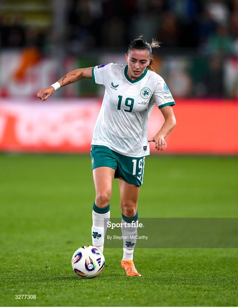 28 October 2025; Abbie Larkin of Republic of Ireland during the UEFA Women's Nations League A/B promotion/relegation play-off second leg match between Belgium and Republic of Ireland at The King Power At Den Dreef Stadium in Leuven, Belgium. Photo by Stephen McCarthy/Sportsfile