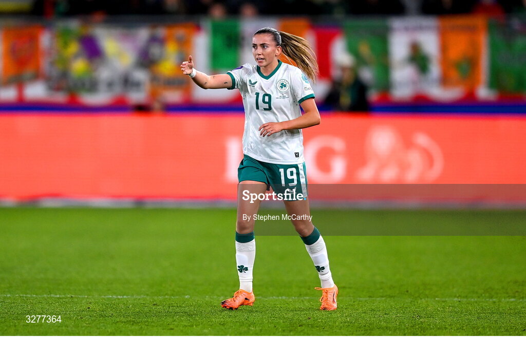 28 October 2025; Abbie Larkin of Republic of Ireland during the UEFA Women's Nations League A/B promotion/relegation play-off second leg match between Belgium and Republic of Ireland at The King Power At Den Dreef Stadium in Leuven, Belgium. Photo by Stephen McCarthy/Sportsfile