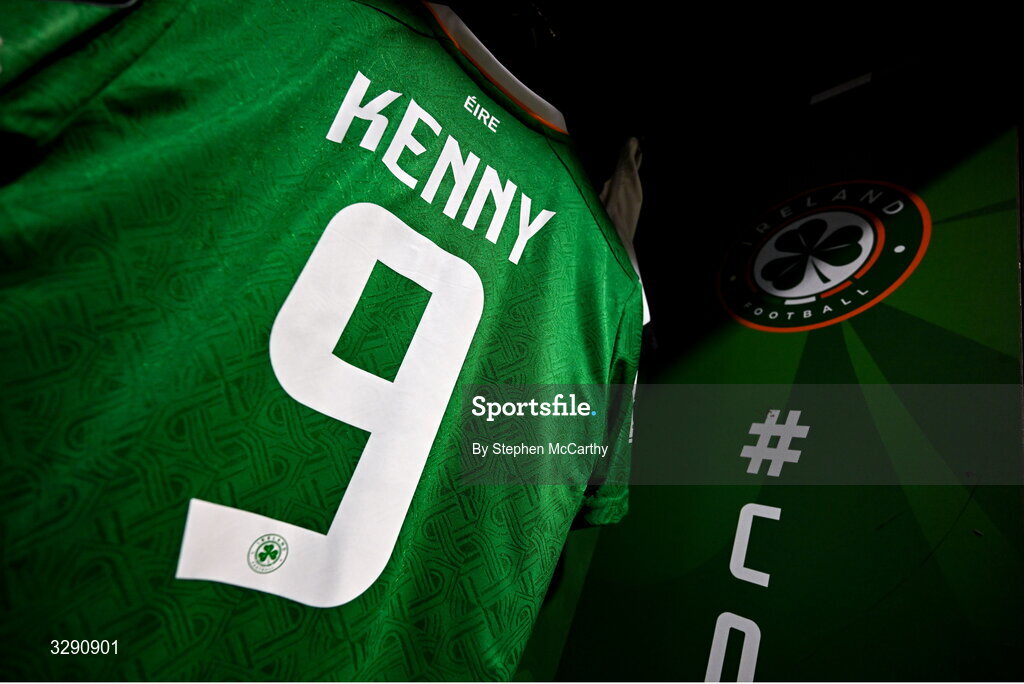 13 November 2025; A general view of the jersey of Johnny Kenny in the Republic of Ireland dressing room before the FIFA World Cup 2026 Group F Qualifier match between Republic of Ireland and Portugal at the Aviva Stadium in Dublin. Photo by Stephen McCarthy/Sportsfile