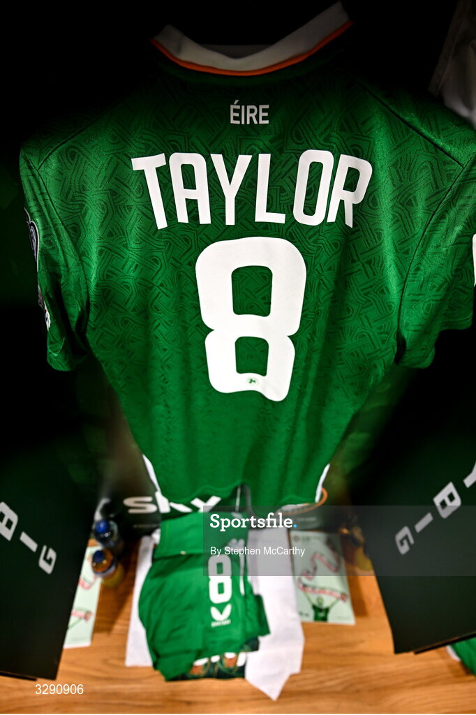 13 November 2025; A general view of the jersey of Jack Taylor in the Republic of Ireland dressing room before the FIFA World Cup 2026 Group F Qualifier match between Republic of Ireland and Portugal at the Aviva Stadium in Dublin. Photo by Stephen McCarthy/Sportsfile