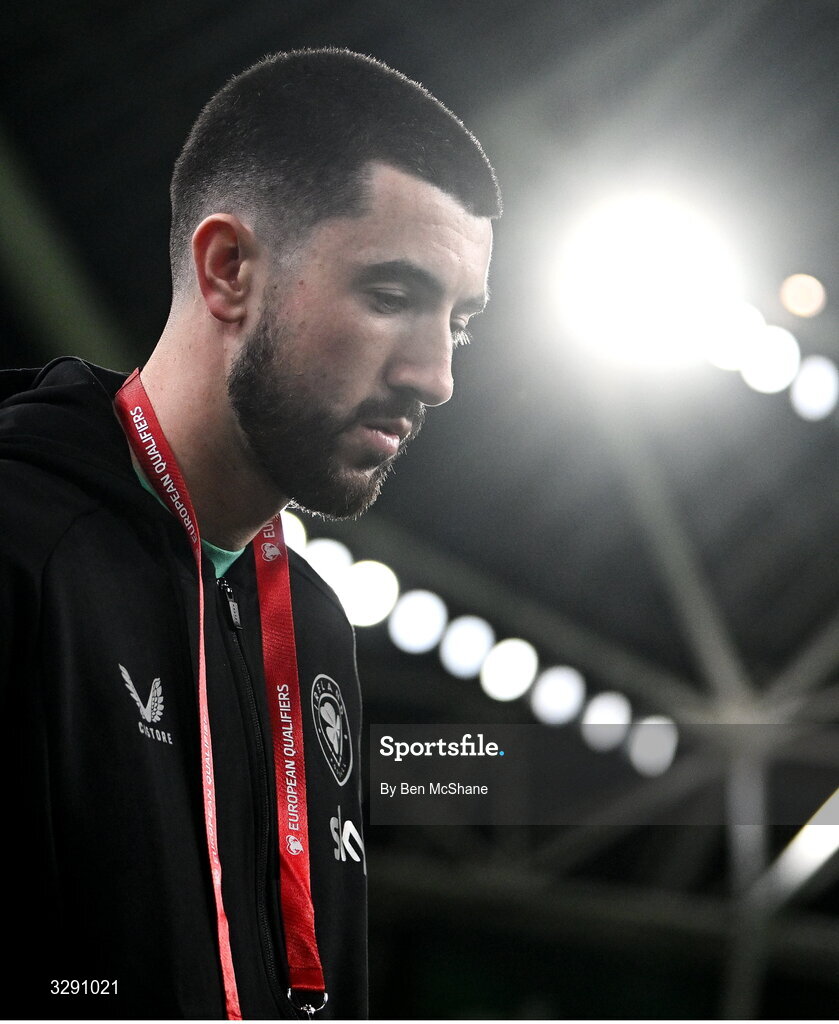 13 November 2025; Finn Azaz of Republic of Ireland before the FIFA World Cup 2026 Group F Qualifier match between Republic of Ireland and Portugal at the Aviva Stadium in Dublin. Photo by Ben McShane/Sportsfile
