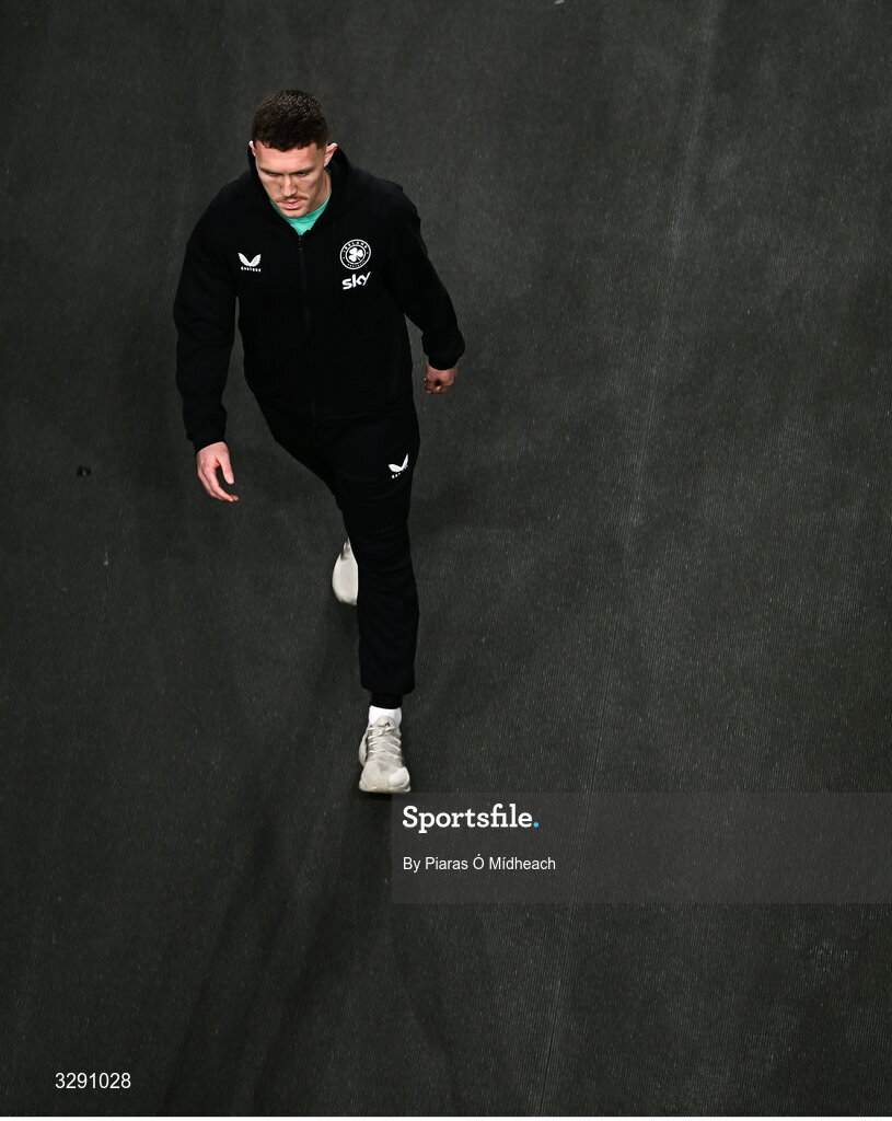 13 November 2025; Dara O'Shea of Republic of Ireland walks the pitch before the FIFA World Cup 2026 Group F Qualifier match between Republic of Ireland and Portugal at the Aviva Stadium in Dublin. Photo by Piaras Ó Mídheach/Sportsfile