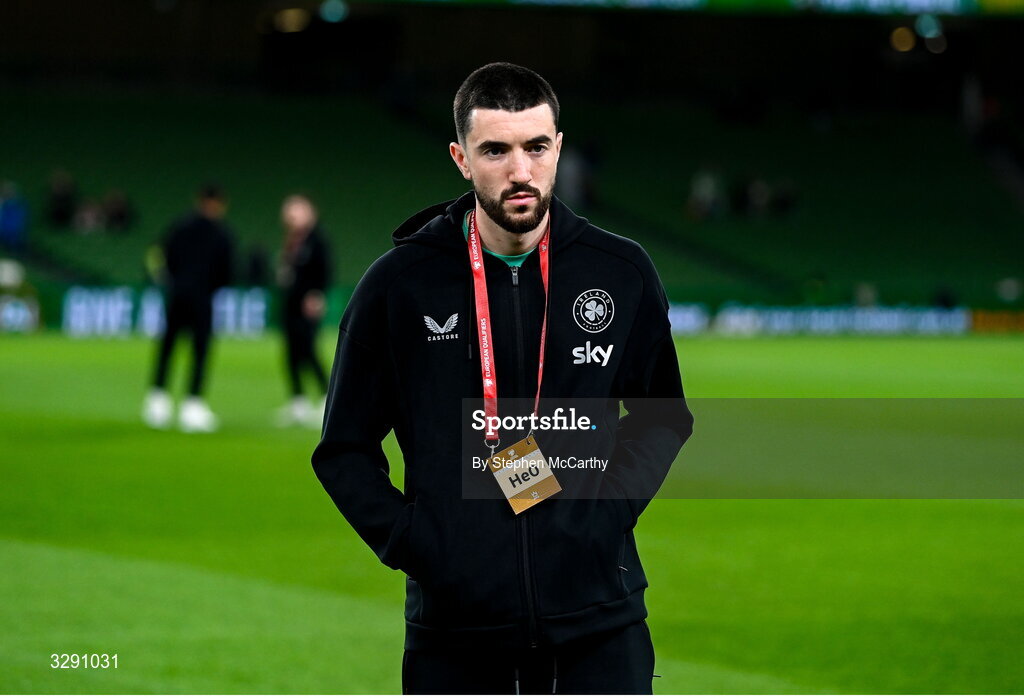 13 November 2025; Finn Azaz of Republic of Ireland walks the pitch before the FIFA World Cup 2026 Group F Qualifier match between Republic of Ireland and Portugal at the Aviva Stadium in Dublin. Photo by Stephen McCarthy/Sportsfile