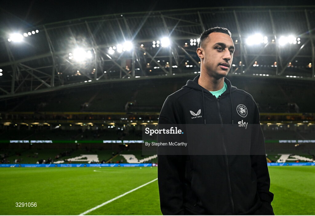 13 November 2025; Adam Idah of Republic of Ireland walks the pitch before the FIFA World Cup 2026 Group F Qualifier match between Republic of Ireland and Portugal at the Aviva Stadium in Dublin. Photo by Stephen McCarthy/Sportsfile