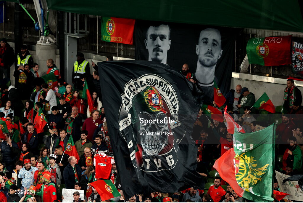 13 November 2025; Portugal supporters before the FIFA World Cup 2026 Group F Qualifier match between Republic of Ireland and Portugal at the Aviva Stadium in Dublin. Photo by Michael P Ryan/Sportsfile
