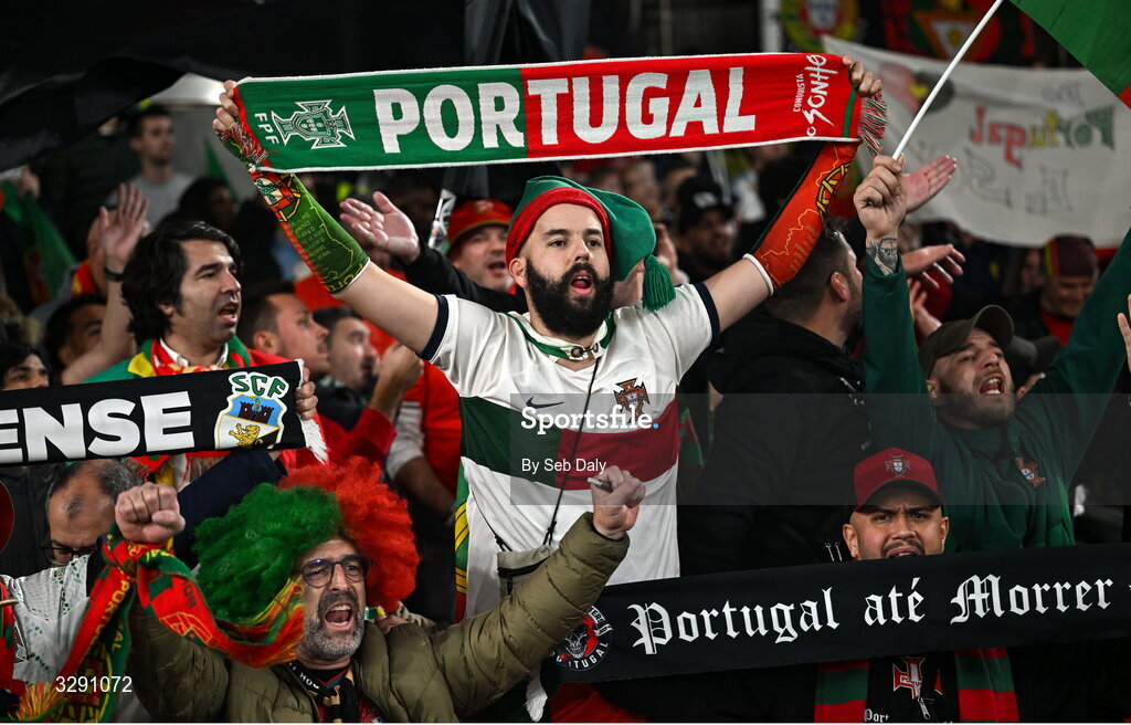 13 November 2025; Portugal supporters before the FIFA World Cup 2026 Qualifier match between Republic of Ireland and Portugal at the Aviva Stadium in Dublin. Photo by Seb Daly/Sportsfile