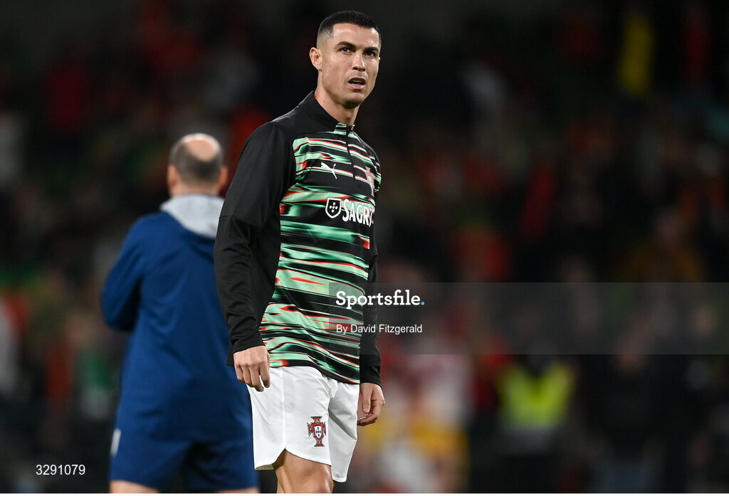 13 November 2025; Cristiano Ronaldo of Portugal warms up before the FIFA World Cup 2026 Group F Qualifier match between Republic of Ireland and Portugal at the Aviva Stadium in Dublin. Photo by David Fitzgerald/Sportsfile