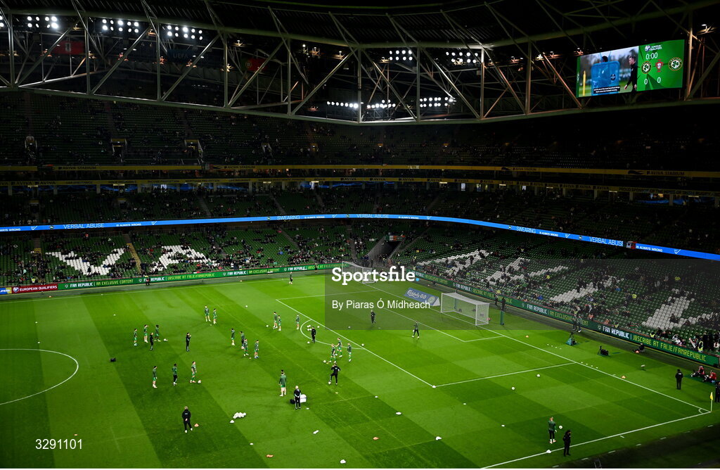 13 November 2025; Portugal warm up before the FIFA World Cup 2026 Group F Qualifier match between Republic of Ireland and Portugal at the Aviva Stadium in Dublin. Photo by Piaras Ó Mídheach/Sportsfile