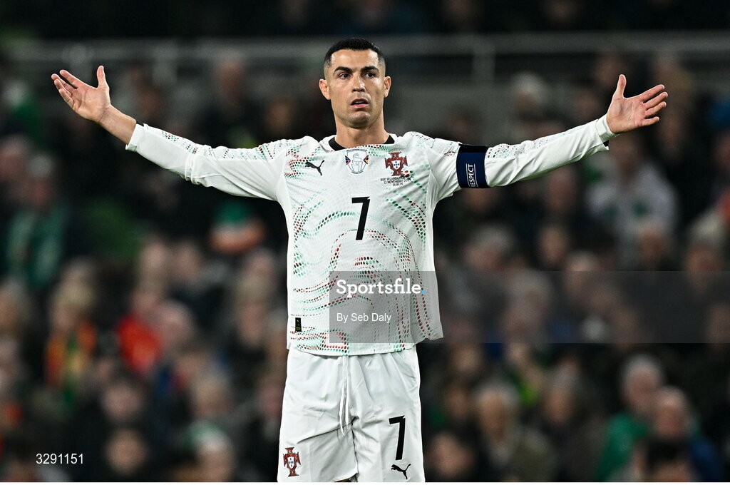 13 November 2025; Cristiano Ronaldo of Portugal reacts after the Republic of Ireland scored during the FIFA World Cup 2026 Qualifier match between Republic of Ireland and Portugal at the Aviva Stadium in Dublin. Photo by Seb Daly/Sportsfile