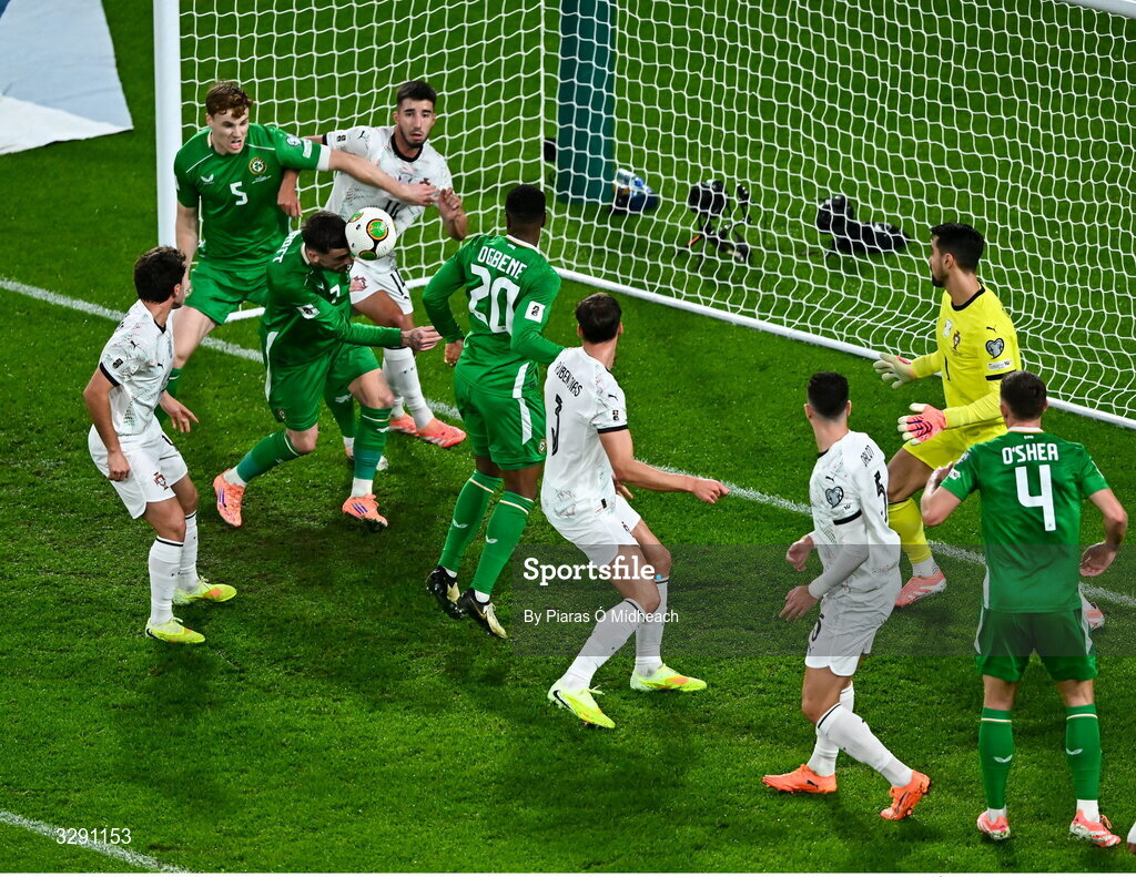 13 November 2025; Troy Parrott of Republic of Ireland scores his side's first goal during the FIFA World Cup 2026 Group F Qualifier match between Republic of Ireland and Portugal at the Aviva Stadium in Dublin. Photo by Piaras Ó Mídheach/Sportsfile