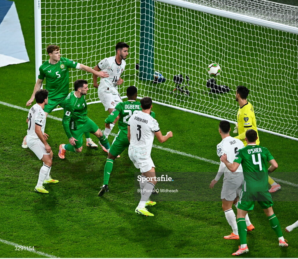 13 November 2025; Troy Parrott of Republic of Ireland scores his side's first goal during the FIFA World Cup 2026 Group F Qualifier match between Republic of Ireland and Portugal at the Aviva Stadium in Dublin. Photo by Piaras Ó Mídheach/Sportsfile