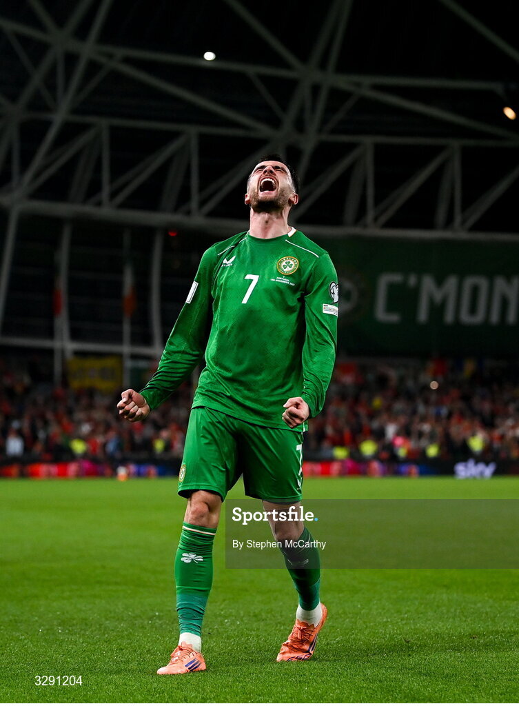 13 November 2025; Troy Parrott of Republic of Ireland celebrates after scoring his side's second goal during the FIFA World Cup 2026 Group F Qualifier match between Republic of Ireland and Portugal at the Aviva Stadium in Dublin. Photo by Stephen McCarthy/Sportsfile