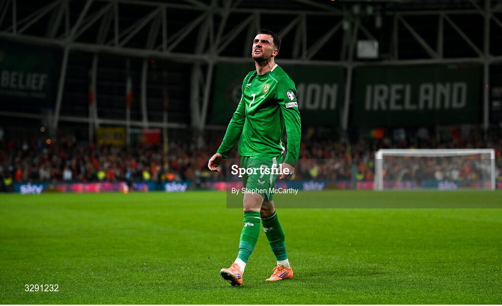 13 November 2025; Troy Parrott of Republic of Ireland celebrates after scoring his side's second goal during the FIFA World Cup 2026 Group F Qualifier match between Republic of Ireland and Portugal at the Aviva Stadium in Dublin. Photo by Stephen McCarthy/Sportsfile