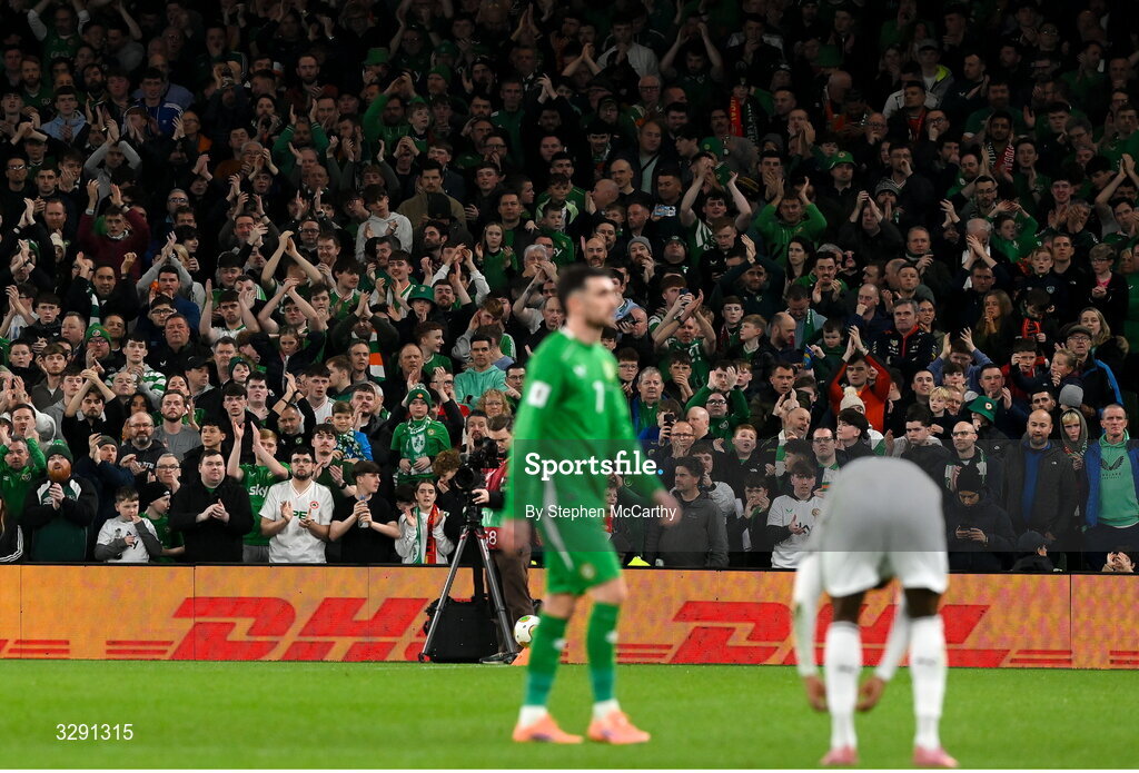 13 November 2025; Supporters applaud as Troy Parrott of Republic of Ireland leaves the pitch upon being subtituted during the FIFA World Cup 2026 Group F Qualifier match between Republic of Ireland and Portugal at the Aviva Stadium in Dublin. Photo by Stephen McCarthy/Sportsfile