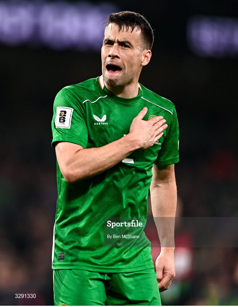 13 November 2025; Seamus Coleman of Republic of Ireland celebrates after the FIFA World Cup 2026 Group F Qualifier match between Republic of Ireland and Portugal at the Aviva Stadium in Dublin. Photo by Ben McShane/Sportsfile