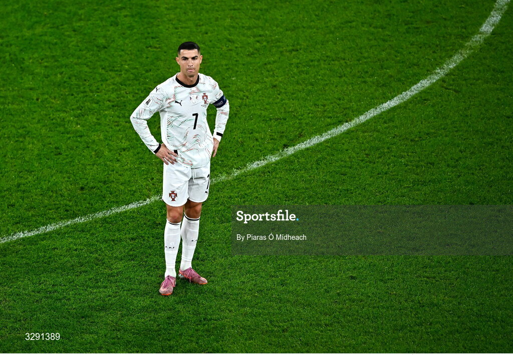 13 November 2025; Cristiano Ronaldo of Portugal awaits the result of VAR before being sent off during the FIFA World Cup 2026 Group F Qualifier match between Republic of Ireland and Portugal at the Aviva Stadium in Dublin. Photo by Piaras Ó Mídheach/Sportsfile