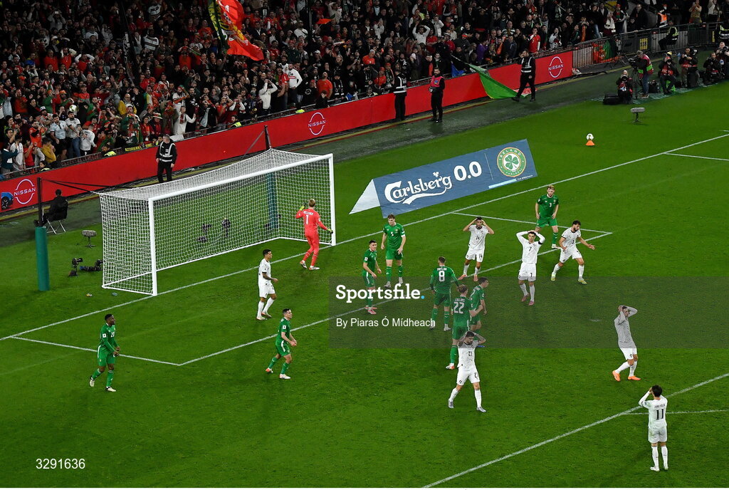 13 November 2025; Portugal players react after a missed chance during the FIFA World Cup 2026 Group F Qualifier match between Republic of Ireland and Portugal at the Aviva Stadium in Dublin. Photo by Piaras Ó Mídheach/Sportsfile