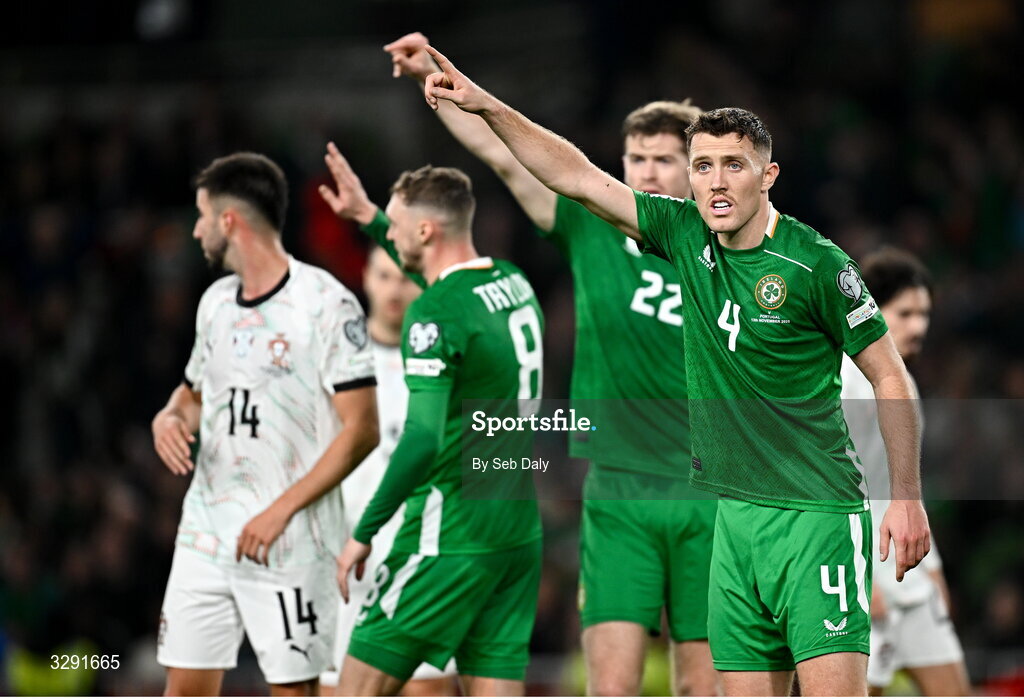 13 November 2025; Dara O'Shea of Republic of Ireland during the FIFA World Cup 2026 Qualifier match between Republic of Ireland and Portugal at the Aviva Stadium in Dublin. Photo by Seb Daly/Sportsfile