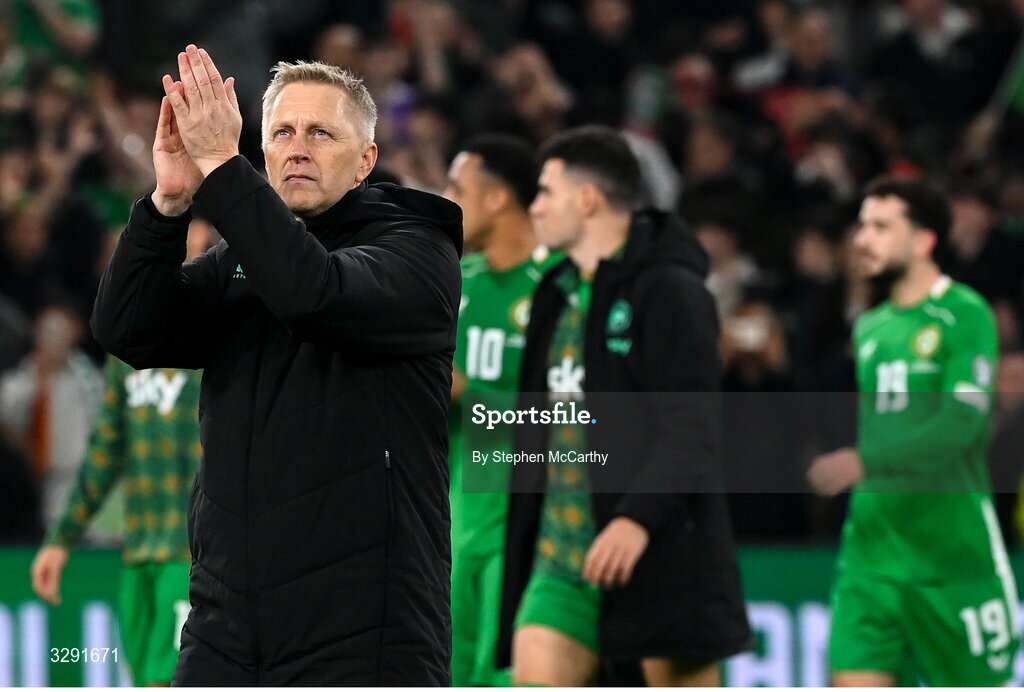 13 November 2025; Republic of Ireland head coach Heimir Hallgrimsson acknowledges his side's supporters after the FIFA World Cup 2026 Group F Qualifier match between Republic of Ireland and Portugal at the Aviva Stadium in Dublin. Photo by Stephen McCarthy/Sportsfile