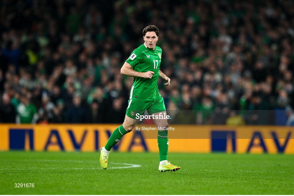 13 November 2025; Conor Coventry of Republic of Ireland during the FIFA World Cup 2026 Group F Qualifier match between Republic of Ireland and Portugal at the Aviva Stadium in Dublin. Photo by Stephen McCarthy/Sportsfile