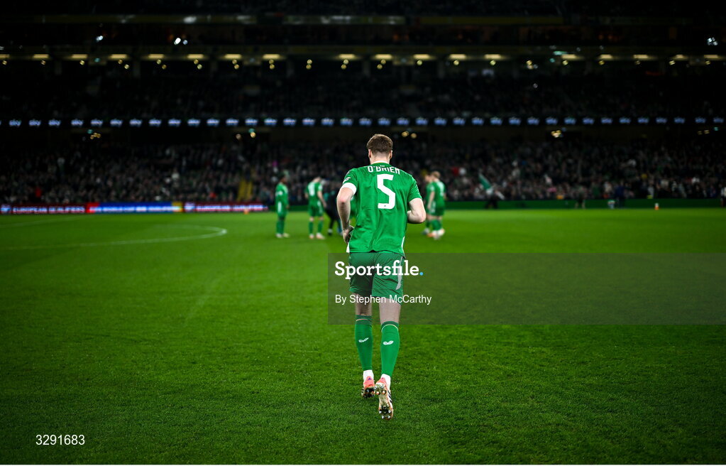 13 November 2025; Jake O'Brien of Republic of Ireland before the FIFA World Cup 2026 Group F Qualifier match between Republic of Ireland and Portugal at the Aviva Stadium in Dublin. Photo by Stephen McCarthy/Sportsfile