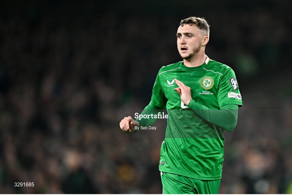 13 November 2025; Jack Taylor of Republic of Ireland during the FIFA World Cup 2026 Qualifier match between Republic of Ireland and Portugal at the Aviva Stadium in Dublin. Photo by Seb Daly/Sportsfile