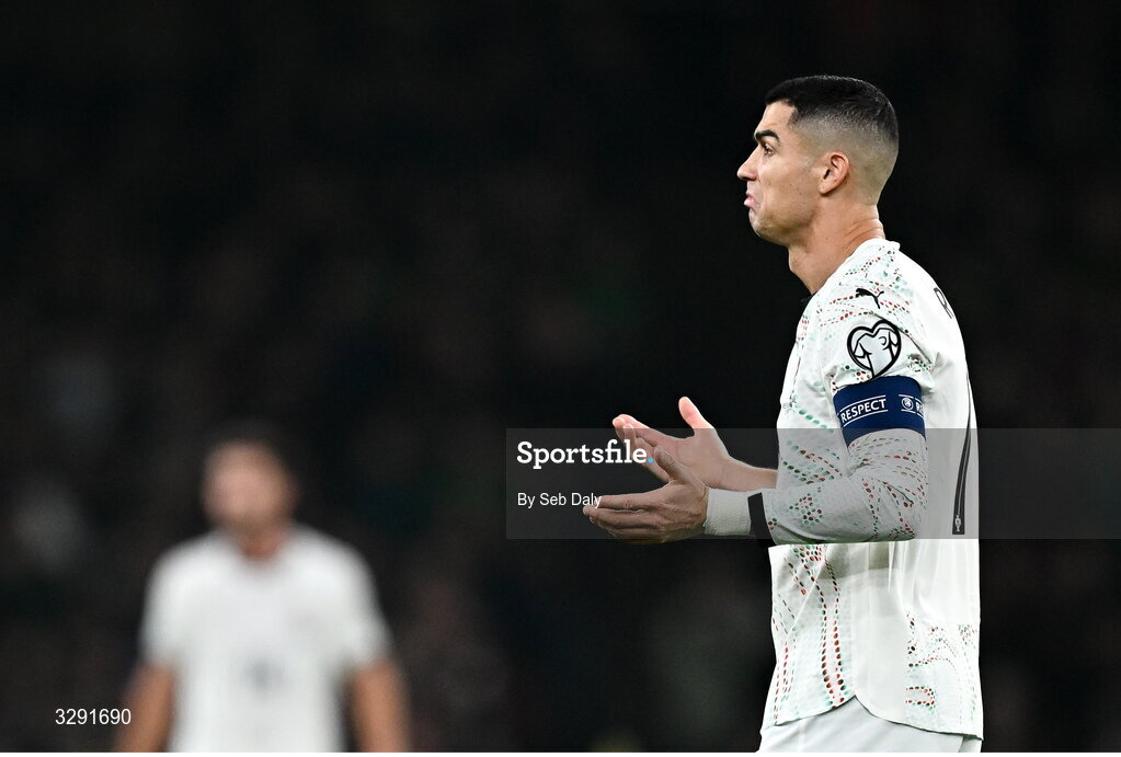 13 November 2025; Cristiano Ronaldo of Portugal reacts during the FIFA World Cup 2026 Qualifier match between Republic of Ireland and Portugal at the Aviva Stadium in Dublin. Photo by Seb Daly/Sportsfile