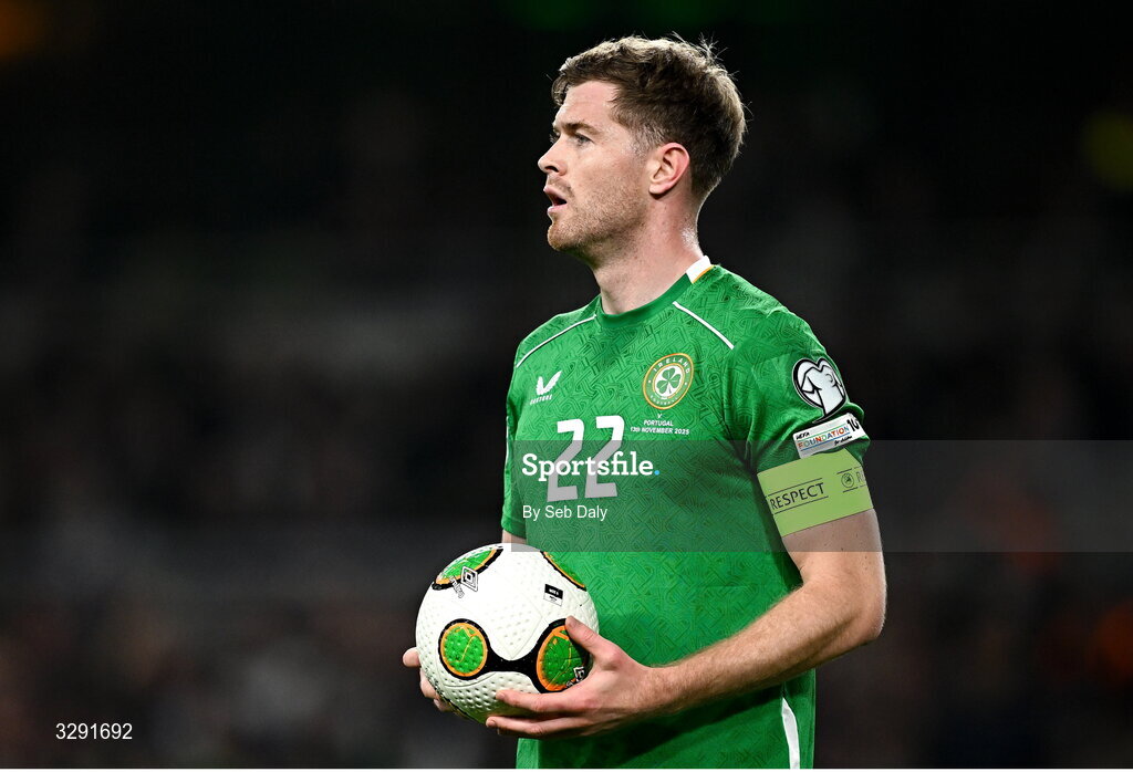 13 November 2025; Nathan Collins of Republic of Ireland during the FIFA World Cup 2026 Qualifier match between Republic of Ireland and Portugal at the Aviva Stadium in Dublin. Photo by Seb Daly/Sportsfile