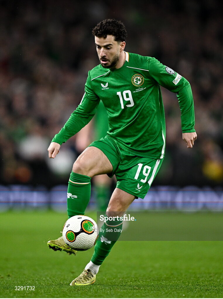 13 November 2025; Mikey Johnston of Republic of Ireland during the FIFA World Cup 2026 Qualifier match between Republic of Ireland and Portugal at the Aviva Stadium in Dublin. Photo by Seb Daly/Sportsfile