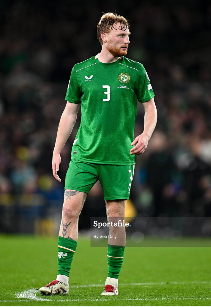 13 November 2025; Liam Scales of Republic of Ireland during the FIFA World Cup 2026 Qualifier match between Republic of Ireland and Portugal at the Aviva Stadium in Dublin. Photo by Seb Daly/Sportsfile