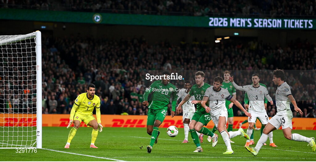 13 November 2025; Chiedozie Ogbene of Republic of Ireland during the FIFA World Cup 2026 Group F Qualifier match between Republic of Ireland and Portugal at the Aviva Stadium in Dublin. Photo by Stephen McCarthy/Sportsfile
