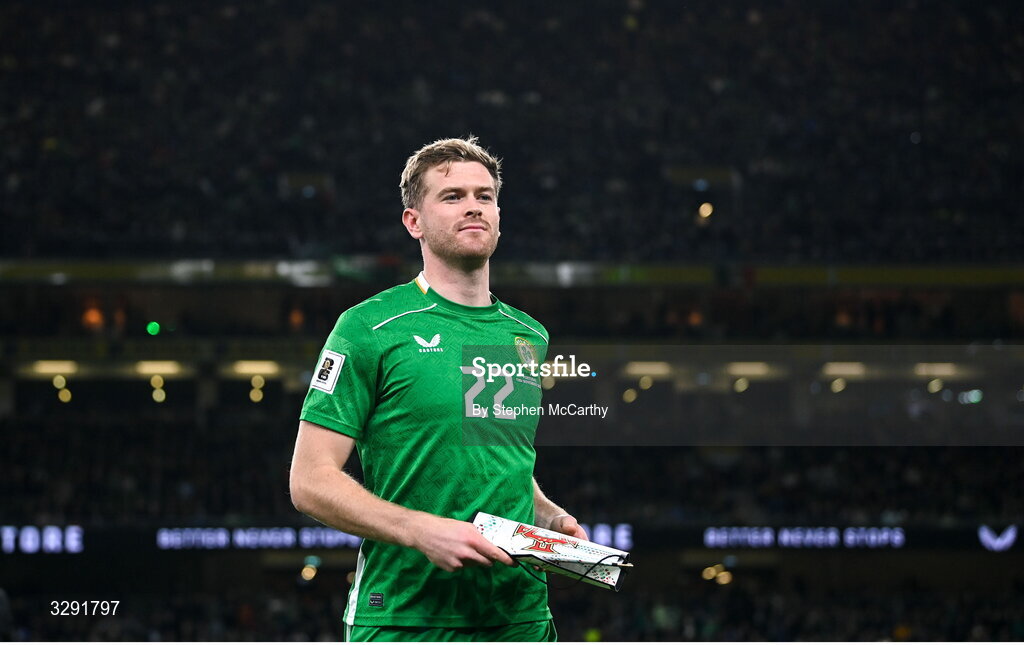 13 November 2025; Nathan Collins of Republic of Ireland before the FIFA World Cup 2026 Group F Qualifier match between Republic of Ireland and Portugal at the Aviva Stadium in Dublin. Photo by Stephen McCarthy/Sportsfile