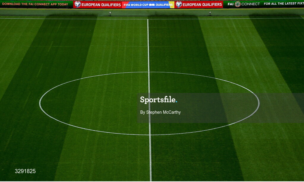 13 November 2025; A general view of the centre circle pitch marking before the FIFA World Cup 2026 Group F Qualifier match between Republic of Ireland and Portugal at the Aviva Stadium in Dublin. Photo by Stephen McCarthy/Sportsfile