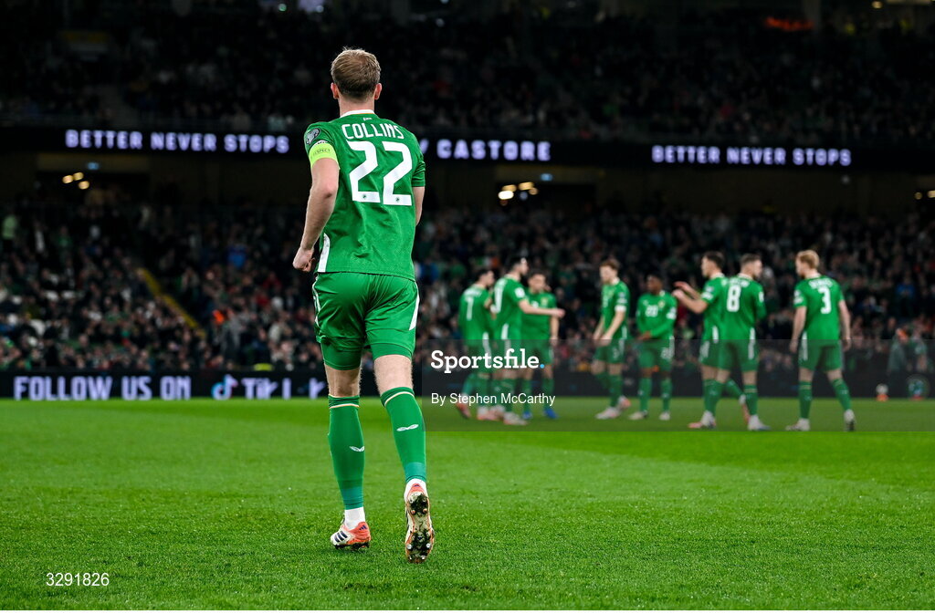 13 November 2025; Nathan Collins of Republic of Ireland before the FIFA World Cup 2026 Group F Qualifier match between Republic of Ireland and Portugal at the Aviva Stadium in Dublin. Photo by Stephen McCarthy/Sportsfile