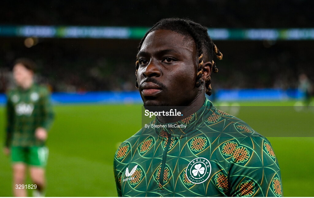 13 November 2025; Festy Ebosele of Republic of Ireland before the FIFA World Cup 2026 Group F Qualifier match between Republic of Ireland and Portugal at the Aviva Stadium in Dublin. Photo by Stephen McCarthy/Sportsfile
