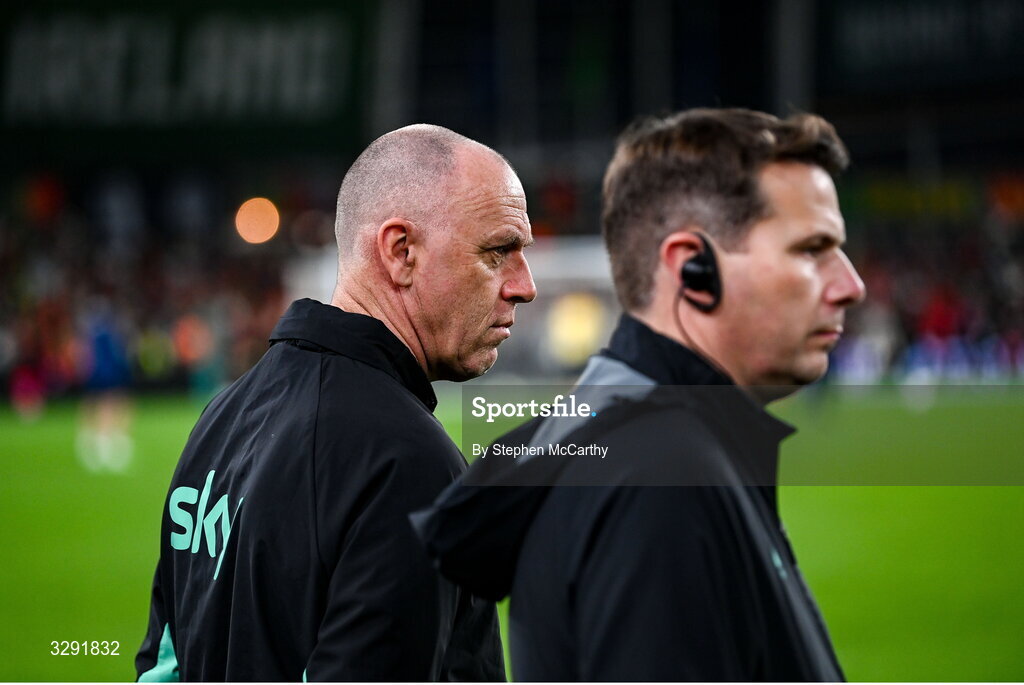 13 November 2025; Republic of Ireland osteopath Tony McCarthy and orthopaedic surgeon Professor Joseph Butler, right, before the FIFA World Cup 2026 Group F Qualifier match between Republic of Ireland and Portugal at the Aviva Stadium in Dublin. Photo by Stephen McCarthy/Sportsfile