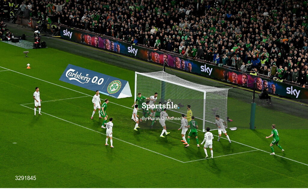 13 November 2025; Troy Parrott of Republic of Ireland scores his side's first goal during the FIFA World Cup 2026 Group F Qualifier match between Republic of Ireland and Portugal at the Aviva Stadium in Dublin. Photo by Piaras Ó Mídheach/Sportsfile