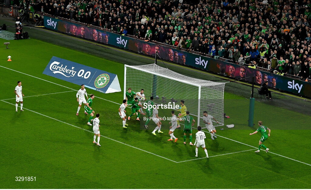 13 November 2025; Troy Parrott of Republic of Ireland scores his side's first goal during the FIFA World Cup 2026 Group F Qualifier match between Republic of Ireland and Portugal at the Aviva Stadium in Dublin. Photo by Piaras Ó Mídheach/Sportsfile