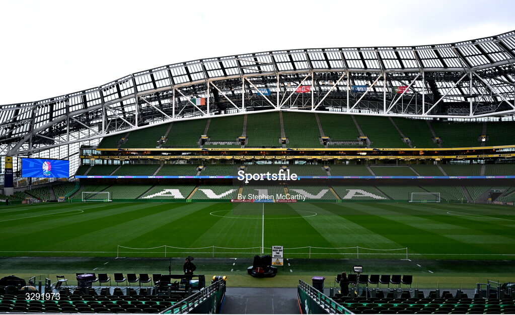 13 November 2025; A general view inside the stadium featuring EURO 2028 branding during the FIFA World Cup 2026 Group F Qualifier match between Republic of Ireland and Portugal at the Aviva Stadium in Dublin. Photo by Stephen McCarthy/Sportsfile