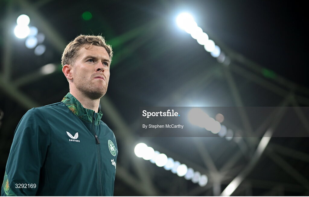 13 November 2025; Nathan Collins of Republic of Ireland before the FIFA World Cup 2026 Group F Qualifier match between Republic of Ireland and Portugal at the Aviva Stadium in Dublin. Photo by Stephen McCarthy/Sportsfile
