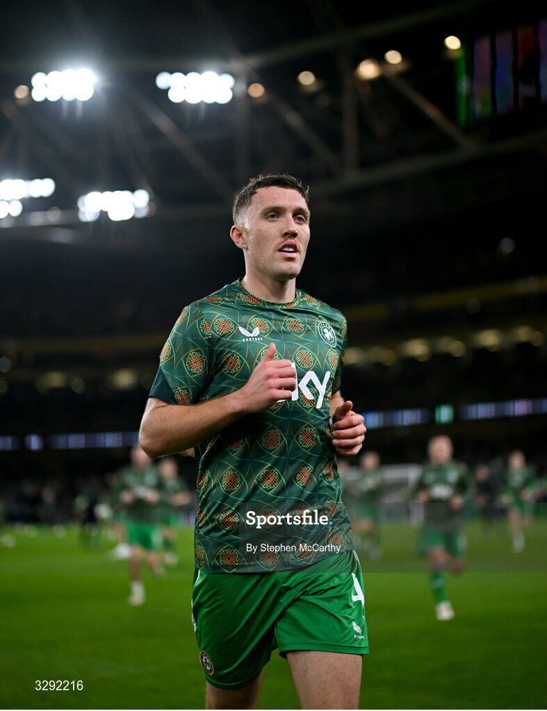 13 November 2025; Dara O'Shea of Republic of Ireland before the FIFA World Cup 2026 Group F Qualifier match between Republic of Ireland and Portugal at the Aviva Stadium in Dublin. Photo by Stephen McCarthy/Sportsfile