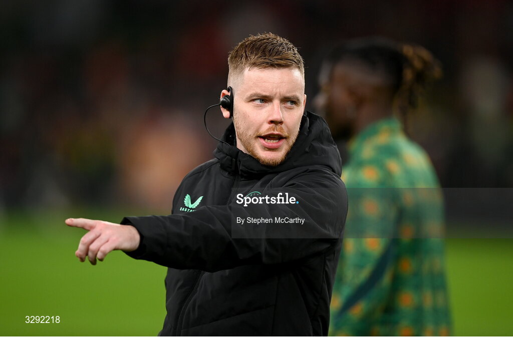 13 November 2025; Republic of Ireland athletic therapist Sam Rice before the FIFA World Cup 2026 Group F Qualifier match between Republic of Ireland and Portugal at the Aviva Stadium in Dublin. Photo by Stephen McCarthy/Sportsfile