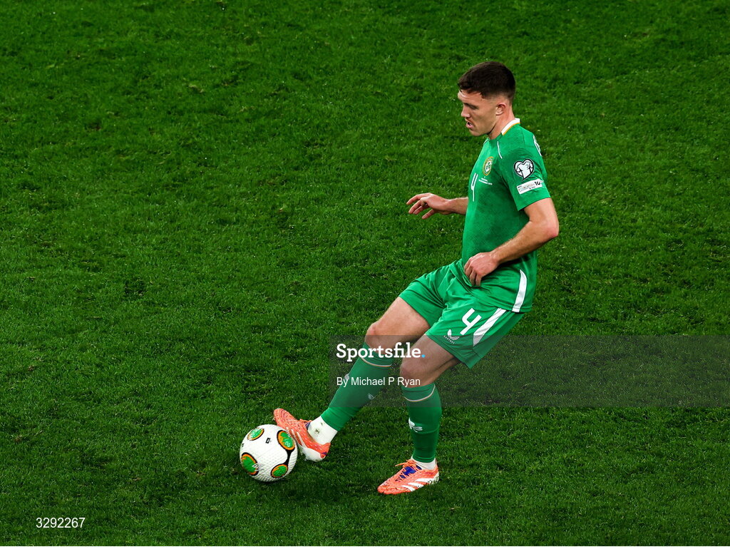 13 November 2025; Dara O'Shea of Republic of Ireland during the FIFA World Cup 2026 Group F Qualifier match between Republic of Ireland and Portugal at the Aviva Stadium in Dublin. Photo by Michael P Ryan/Sportsfile
