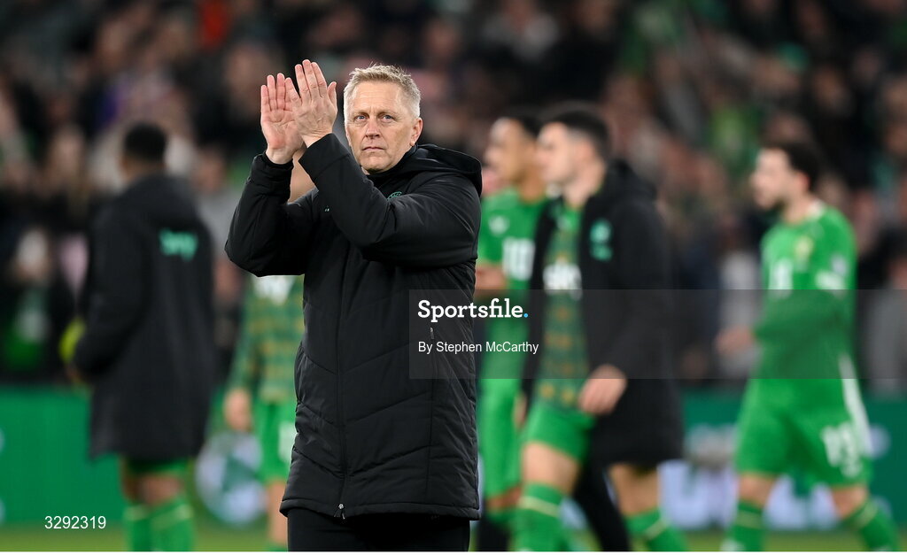 13 November 2025; Republic of Ireland head coach Heimir Hallgrimsson acknowledges his side's supporters after the FIFA World Cup 2026 Group F Qualifier match between Republic of Ireland and Portugal at the Aviva Stadium in Dublin. Photo by Stephen McCarthy/Sportsfile